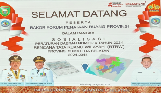 Palembang – Pemerintah Provinsi Sumatera Selatan menyelenggarakan Rapat Koordinasi Forum Penataan Ruang (FPR) dalam rangka sosialisasi Peraturan Dae ...